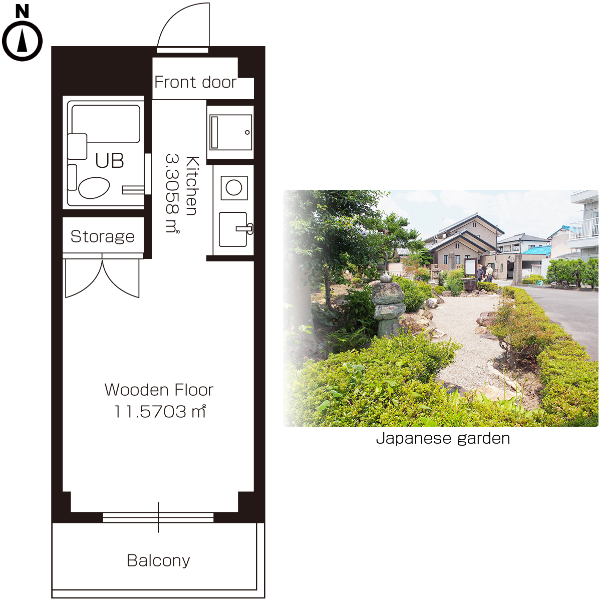 | Preferences | Shower / Laundry area (indoor) / Free Wi-Fi / IH cooking heater / Balcony / Wooden floor / Washbasin / Storage space / Closet / Terrestrial digital / On-site garbage storage / 1 room / South facing rooms / Good sunshade / Quiet residential area / Property directly managed by our company / Parking available / Bicycle-parking lot available |